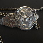 Zilver, ijzeren bladen, jasseron ketting, haak, alles bewerkt, tuigje.