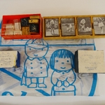 Archiefdoos, bruin met expositiemateriaal.