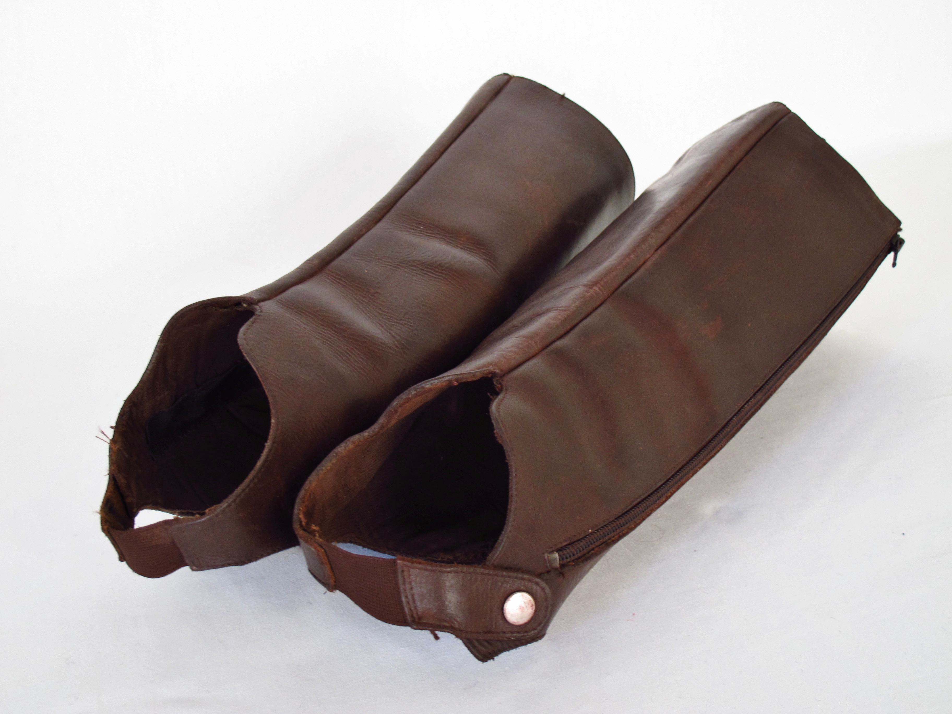 Bruine beenkappen met rits.