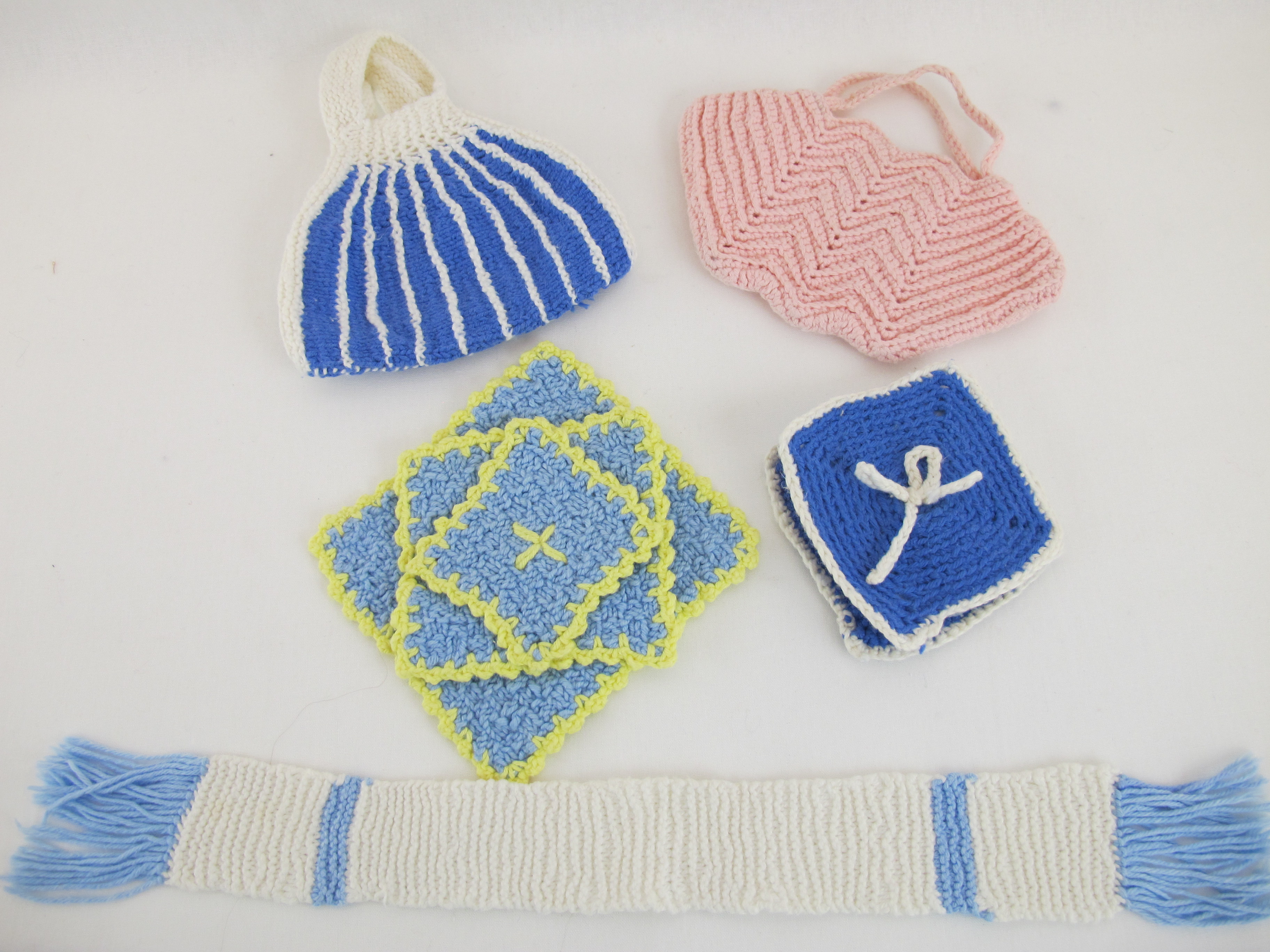 Handwerkjes, katoen in de kleuren wit, roze, licht blauw en medium blauw.