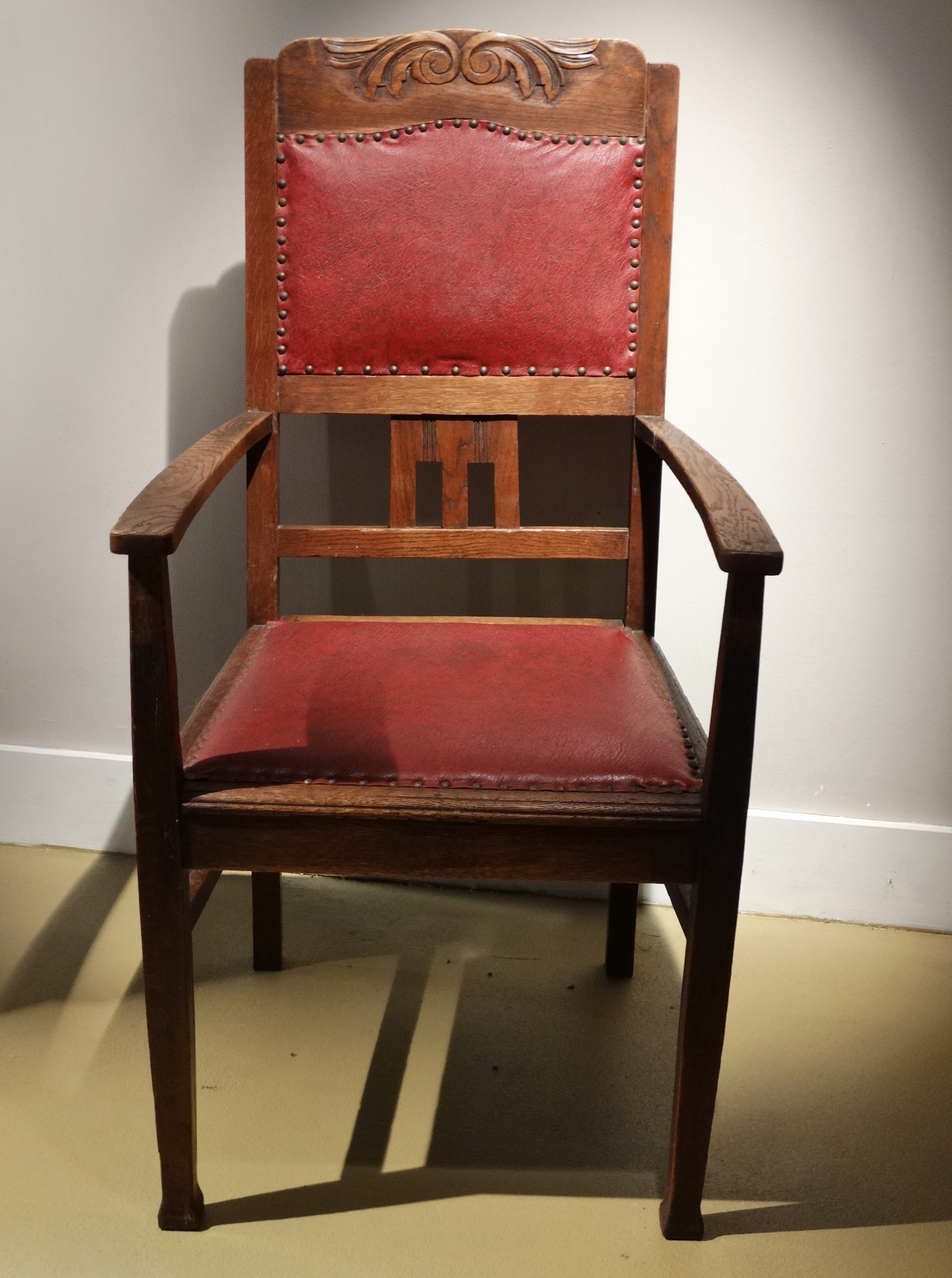 Eilkenhout, rood leer op zitting en rugleuning.